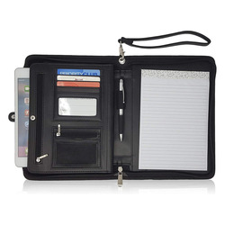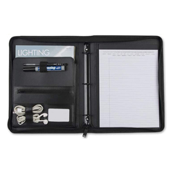 Carpeta de documentos personalizada de fábrica, portafolio de cuero de imitación negro A5 con cremallera
